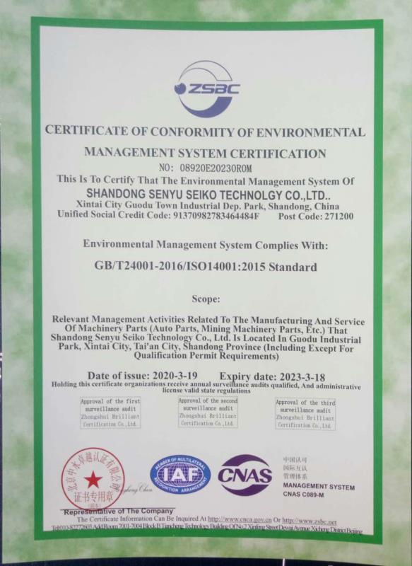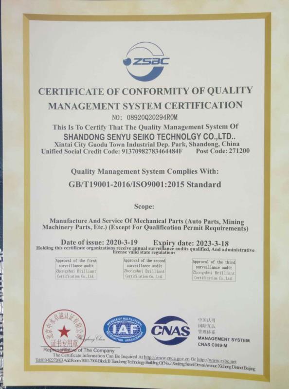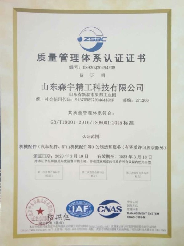 山東森宇精工科技有限公司成立于2005年,位于五岳獨尊的泰山腳下,經(jīng)濟發(fā)達、交通便利。是一家集科研、生產(chǎn)、銷售于一體的國家高新技術(shù)企業(yè),占地60000多平方米,建筑面積46000平方米,職工100余人,其中專業(yè)技術(shù)人員28名,碩士生6名,博士生2名。主要從事三個板塊的生產(chǎn)制造業(yè)務(wù):一、近凈成型精密鑄造及高端精密加工業(yè)務(wù);二、礦山智能化設(shè)備制造業(yè)務(wù);三、健康凈水系統(tǒng)裝置生產(chǎn)制造業(yè)務(wù);先后通過ISO9001、CE/PED等國際體系認證,產(chǎn)品遠銷歐盟、美國、韓國、日本等發(fā)達國家和地區(qū),并為全國各大礦山企業(yè)提供配套產(chǎn)品和服務(wù)。